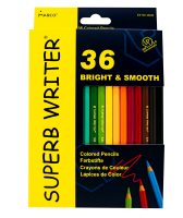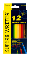 Superb Writer содержит таких нестандартных представителей мира карандашей, как укороченные - это в два раза уменьшенные двенадцати-цветные и шести-цветные карандаши, причём толщина стержня этих коротышей такая же как и у взрослых собратьев и составляет 2,9 мм. Есть в серии карандаши Jumbo, поклонниками которых являются наши самые маленькие, но при этом самые требовательные друзья от трёх лет. Карандаш стандартного размера с толщиной стержня 2,9 мм представлен в виде пяти различных упаковок по количеству карандашей, это 6,12,24,36,48 цветов. Есть также серия акварельных карандашей, укомплектованных кисточкой. Она представлена упаковками 12,24,36 цветов. Серия имеет небольшую, но очень востребованную растяжку чернографитных карандашей в двух дизайнах и нескольких самых популярных твёрдостях НВ и 2В. Карандаши упакованы по 144 карандаша, дабы не ограничивать возможность закупки необходимого покупателю количества карандашей.